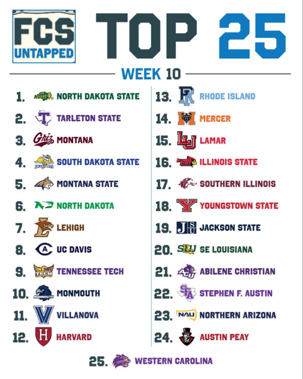 9. While I don't think he's on the Committee, we know there's a lack of people who are focusing on projecting the bracket. 2025 FCS playoff bracket predictions entering the final month of the season | NCAA.com His projection is based on: 1) No slipping up against the two "should win" games AND also beating SELA 2) SFA winning out He put SFA as the #15 and Lamar as the #16. Like I said, it's not the be all, end all.... but it's a decent way to frame it that we know that if we win 3 of 4, we're probably in. I'd rather have the guys sweep and be in position to potentially get a bye.